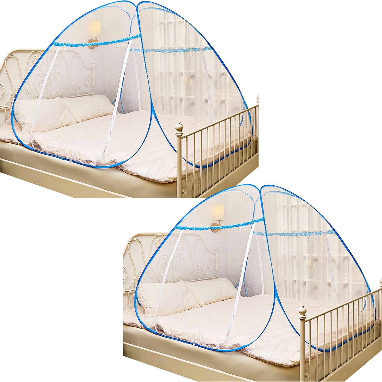 Tudomro 2 Pcs Pop Up Mosquito Net Tent with Bottom 79 x 71 x 59 Inch Folding Design Bed Canopy Portable Mesh Tent for Queen to King Size Bed Bedroom and Outdoor Trip, Easy to Install